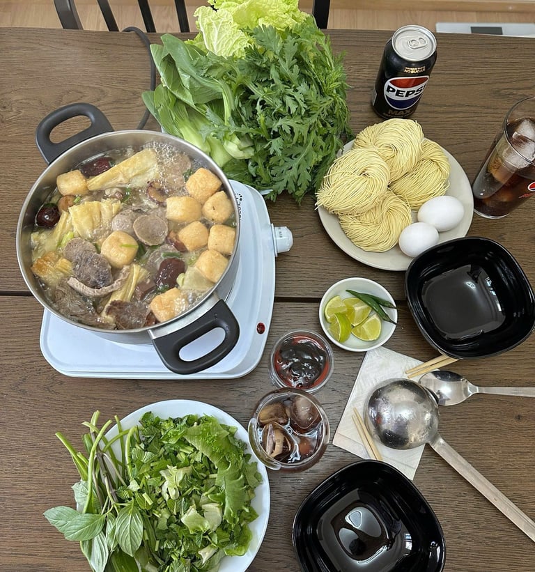 Unlike fast, ready-made hotpots, our Vietnamese hotpot takes time and care – slow-cooked broth, fresh ingredients, balanced flavor, and that warm homemade feel.
